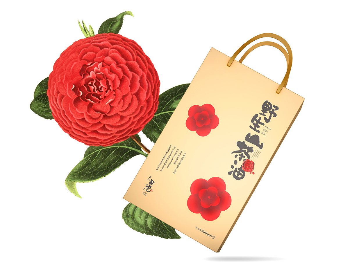 山茶花是產(chǎn)品的核心特色,因此我們采用鮮艷的色彩和細(xì)膩的圖案,將山茶花完美地呈現(xiàn)于包裝之上。山茶花的鮮艷與黑色的品名形成鮮明的對(duì)比,既突出了產(chǎn)品的高貴品質(zhì),又提升了整體視覺(jué)沖擊力。
